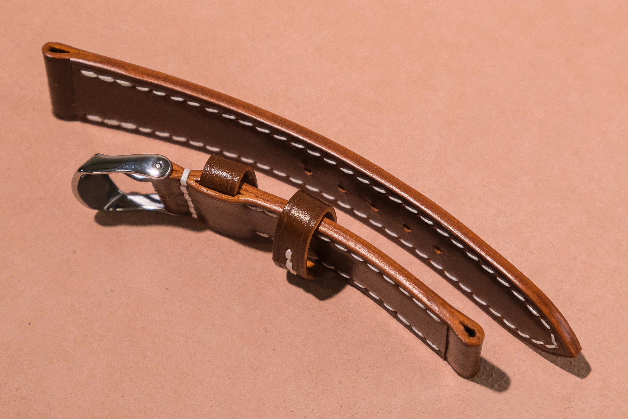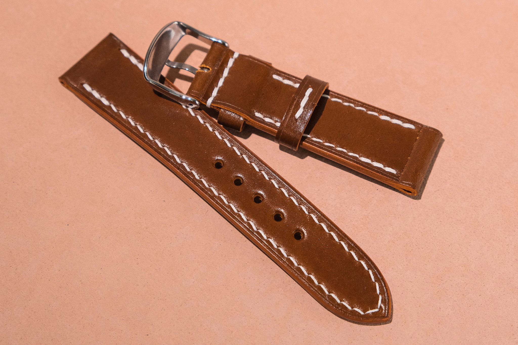 Shinki Hikaku Shell Cordovan Cognac Full Stitch Leather Watch Strap