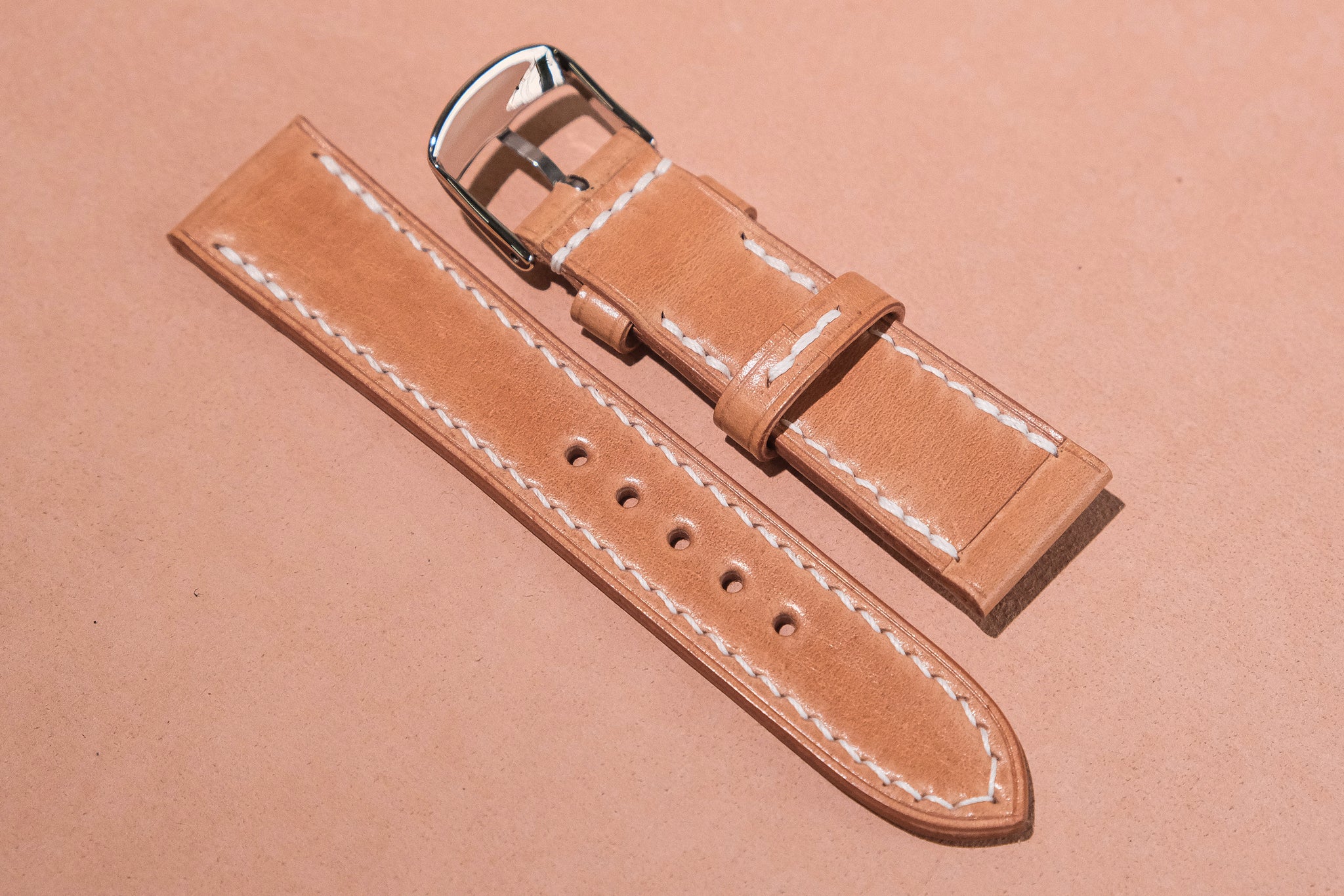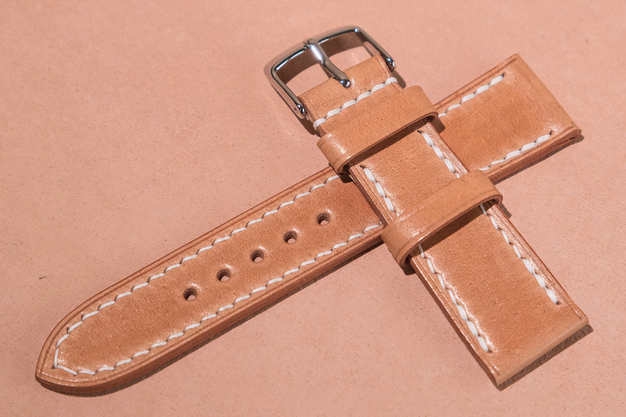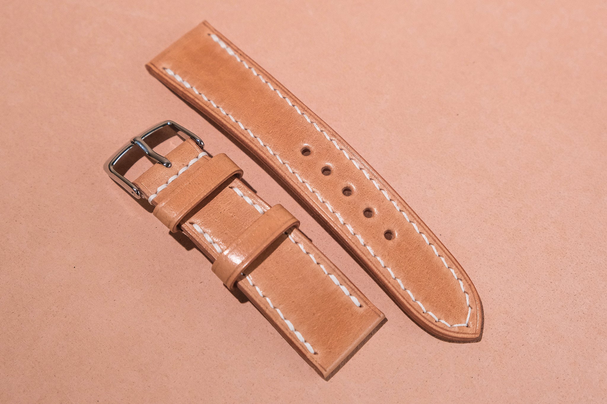 Shinki Hikaku Shell Cordovan Natural Full Stitch Leather Watch Strap
